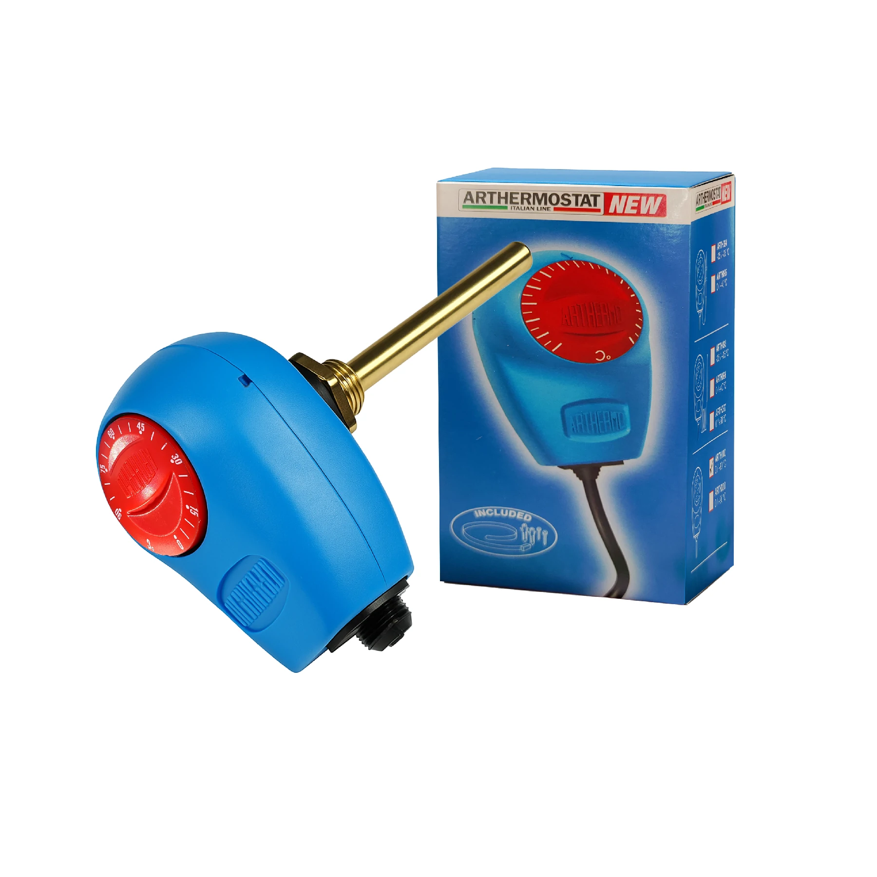 ترموستات مستغرق آرترمو مدل ARTH100 🇮🇹 یکی از دقیقترین و قابل اعتمادترین تجهیزات کنترل دما در سیستمهای گرمایشی و صنعتی است. این ترموستات ساخت کشور ایتالیا بوده و توسط شرکت معتبر Arthermo طراحی و تولید شده است؛ برندی که سالهاست در حوزهی تجهیزات کنترل دما، دقت و دوام را در اولویت قرار داده است.