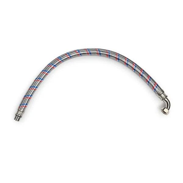 طراحی زاویهدار (چپقی) این شلنگ، نصب آن را در محیطهای کوچک و موتورخانههای کمجا بسیار ساده میکند. این طراحی مانع وارد شدن فشار جانبی به پمپ و منبع شده و لرزش سیستم را بهطور محسوسی کاهش میدهد.