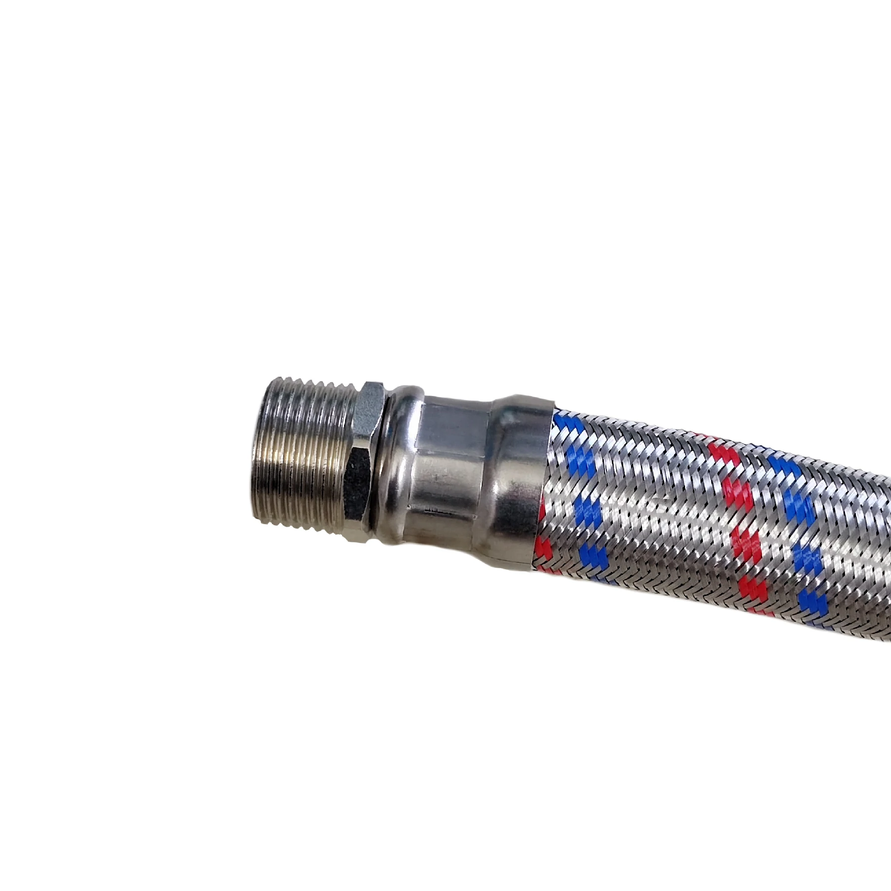 برای افزایش مقاومت مکانیکی و ایمنی، لایه بیرونی شلنگ بهصورت حصیر بافتهشده از استیل ضد زنگ طراحی شده است. این حصیر نقش مهمی در حفظ استحکام شلنگ در فشارهای کاری بالا دارد.